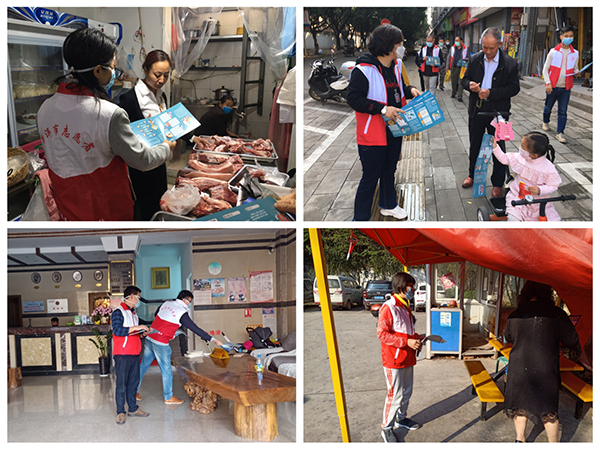 通過發放新冠肺炎疫情防控知識折頁、宣傳單等材料及現場講解、解答、健康衛生宣教等形式,志愿者們向轄區市民宣傳新型冠狀病毒肺炎疫情防控知識,推送疫情防控相關政策和專業知識,引導群眾認真學習,自覺做到不信謠、不造謠、不傳謠。在宣傳疫情防控知識的同時,對未按規范佩戴口罩的人員進行勸導,對未戴口罩群眾進行勸導并免費發放口罩;勸導群眾落實疫情預防措施,出門佩戴口罩,不去人口密集、人員流動性大的地方,不相互串門、不聚會打牌等;教育引導群眾杜絕捕獵、販賣、購買、加工、食用野生動物。省寄防所兩名職工志愿者使用電動噴霧器,對省寄防所綜合樓公共區域、省寄防所小區、湄洲灣小區及區印刷廠小區樓道等公共區域及生活垃圾堆放處等進行消毒噴灑,進一步構建健康衛生的轄區環境。