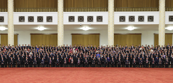 中共中央總書記、國家主席、中央軍委主席習近平23日下午在人民大會堂親切會見了出席黨的二十大代表、特邀代表和列席人員,并同大家合影留念。