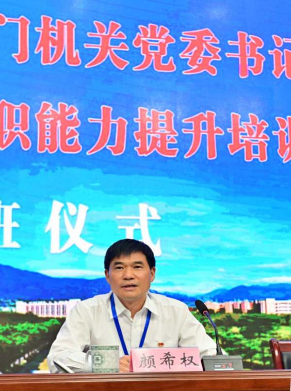 陳國(guó)龍介紹了福州大學(xué)的歷史、教學(xué)科研、學(xué)科發(fā)展等情況,并預(yù)祝本次培訓(xùn)班圓滿(mǎn)成功。顏希權(quán)在作開(kāi)班動(dòng)員時(shí)指出,這期培訓(xùn)班是經(jīng)省委組織部批準(zhǔn)舉辦的一期十分重要的培訓(xùn),是省委省直機(jī)關(guān)工委全面貫徹落實(shí)省第十一次黨代會(huì)精神和省委、省政府推進(jìn)“兩場(chǎng)革命”重要工作部署,落實(shí)省委書(shū)記王寧提出的領(lǐng)導(dǎo)干部要加強(qiáng)學(xué)習(xí)研究,“眼睛向外”“走出去”對(duì)標(biāo)先進(jìn)、學(xué)思踐悟要求的具體舉措。他強(qiáng)調(diào),機(jī)關(guān)黨建工作成效如何,對(duì)其他領(lǐng)域黨的建設(shè)具有重要風(fēng)向標(biāo)作用,只有不斷深化全面從嚴(yán)治黨、進(jìn)行自我革命,從機(jī)關(guān)嚴(yán)起、從機(jī)關(guān)黨委書(shū)記抓起,機(jī)關(guān)黨建才能當(dāng)好“火車(chē)頭”,跑出“加速度”,真正走在前、作表率。他要求,全體參訓(xùn)學(xué)員要提高政治站位,統(tǒng)一思想,切實(shí)增強(qiáng)參與學(xué)習(xí)培訓(xùn)的緊迫性和自覺(jué)性;要聯(lián)系工作實(shí)際,學(xué)深悟透,切實(shí)增強(qiáng)學(xué)習(xí)培訓(xùn)的針對(duì)性和時(shí)效性;要嚴(yán)守紀(jì)律要求,確保實(shí)效,奮力開(kāi)創(chuàng)云南機(jī)關(guān)黨建工作高質(zhì)量發(fā)展新局面。