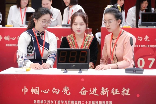 競(jìng)賽分線上個(gè)人賽和團(tuán)體賽,自4月11日至26日,共有100家省直機(jī)關(guān)及直屬單位的15365名婦女干部職工參與到線上比賽中,其中2577人從個(gè)人賽中脫穎而出獲得獎(jiǎng)項(xiàng)。團(tuán)體賽場(chǎng)上,來自64家單位的參賽隊(duì),經(jīng)過初賽、復(fù)賽環(huán)節(jié)的激烈角逐,有10支參賽隊(duì)伍進(jìn)入總決賽。