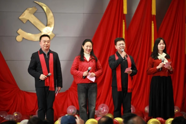 活動開始前,現場已是一片喜慶、祥和的氛圍。大屏幕上滾動播放工委領導班子和各部室送新春祝福的短視頻,洋溢著濃濃的年味。緊接著“你說工作亮點,我送小紅花”環節,展示了工委各部室在過去一年取得的可喜成績。伴隨著喜慶歡騰的節奏,由彌勒寺社區帶來的舞蹈《萬疆》拉開了活動的序幕。詩朗誦《信仰的力量》、舞蹈《青春飛揚》、獨唱《夕陽紅》等節目輪番上演,穿插的游戲環節加強了互動,現場歌舞歡騰、其樂融融。二胡獨奏唱《敖包相會》展現出少數民族的特色風情;詩朗誦《讀中國》抒發出對偉大祖國的熱愛;音詩畫《家和萬事興》講述工委最美家庭故事,表達對美好生活的向往;歌曲彈唱《斯卡布羅集市》《愛》更是將氛圍推到了最高潮,掌聲連連、喝彩不斷。最后,活動在全體合唱《沒有共產黨就沒有新中國》的歌聲中落下帷幕。