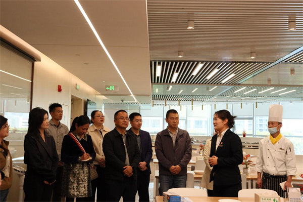 三家企業的團員青年首先走進云勤集團富滇銀行餐飲項目廚房,共同探訪“舌尖上的安全”。在食堂工作人員的引導下,大家參觀了廚房區、粗加工區、面點房、洗撿間、涼菜間、燒臘間等操作間,翻閱了現場臺賬記錄,感受標準化助力食品安全管理全生命周期。