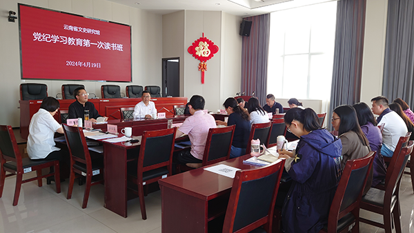 4月19日,云南省文史研究館開展黨紀學習教育第一次讀書班集中學習,圍繞學習貫徹習近平總書記關于黨紀學習教育的重要講話和重要指示精神,重點聚焦新修訂的《中國共產黨紀律處分條例》深學細悟,強化對黨章、黨規、黨紀的認識和敬畏,敲思想警鐘、緊紀律之弦、存敬畏之心,不斷提高黨性修養和拒腐防變能力。