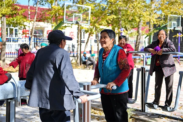 居住在河北省康保縣土城子鎮互助幸福院的老人們在院子里休閑(2023年10月14日攝)。新華社記者 牟宇 攝