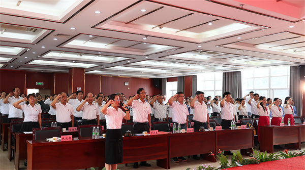 為熱烈慶祝中國共產黨成立103周年,教育引導黨員干部講好黨史故事、弘揚愛黨愛國精神,鑄牢中華民族共同體意識,激發廣大機關黨員干部“奮進新征程、建功新時代”的奮斗豪情,7月1日,普洱市墨江縣委組織部、縣委統戰部、縣委縣直機關工委聯合舉辦“中華民族一家親·紅心向黨共奮進”慶“七一”經典誦讀分享會,共同慶祝黨的生日。縣委常委、縣委統戰部部長出席活動并致辭,來自縣直機關16家黨組織50余名黨員同志參與誦讀分享,縣直機關160余名黨員干部代表親臨現場觀看活動。