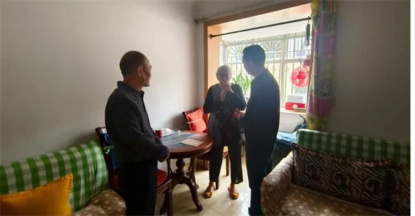 隨后,慰問組上門看望了行動(dòng)不便的先輩后代。通過與老人親切地拉家常、問冷暖,詳細(xì)詢問他們的日常生活、身體狀況和子女就業(yè)等情況,認(rèn)真傾聽他們的心聲和訴求,為他們送上慰問品,表達(dá)對(duì)抗戰(zhàn)先輩及其后代的崇高敬意與深切關(guān)懷。
