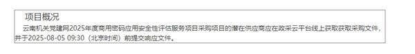 (1)云南機關黨建網2025年度商用密碼應用安全性評估服務項目:
